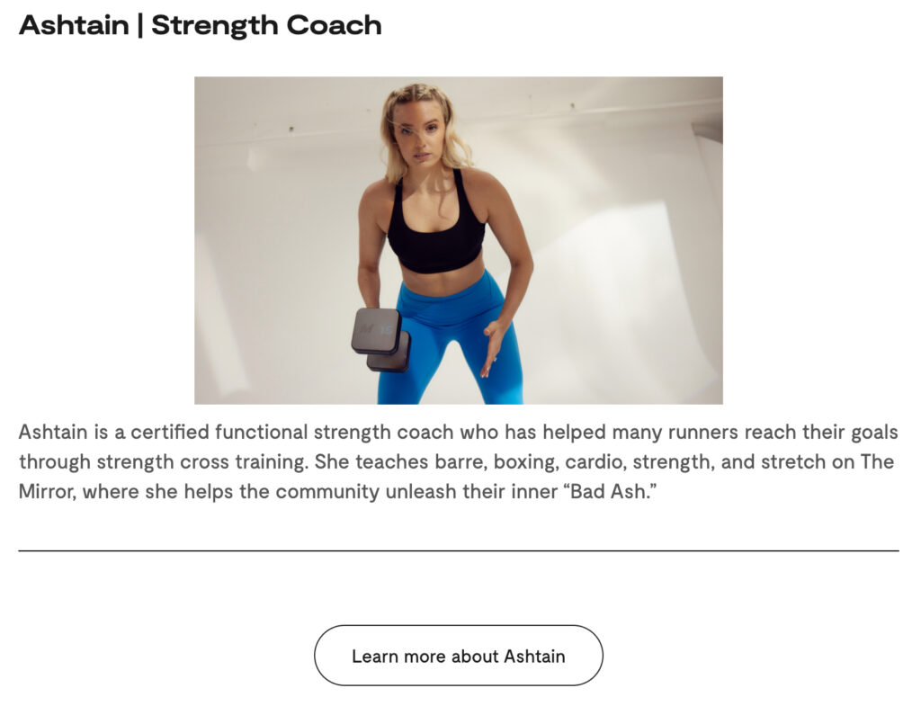 We highlighted their most popular coaches as subject matter experts, including direct quotes and advice, knowing that lululemon Studio coaches were beloved by their audience. This also allowed us to establish authority and trust within our content to fulfill Google’s E-E-A-T signals.